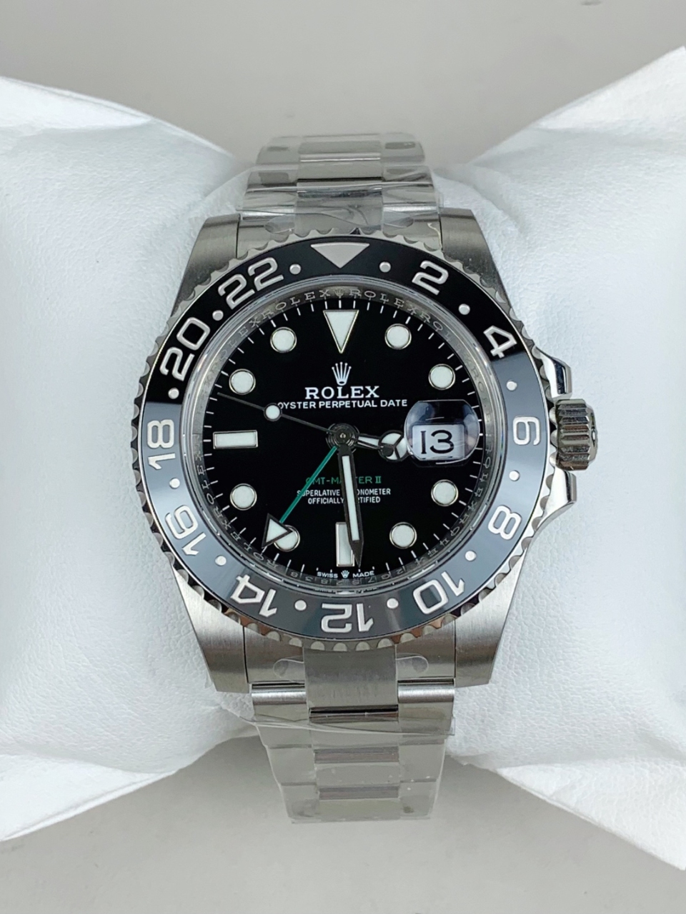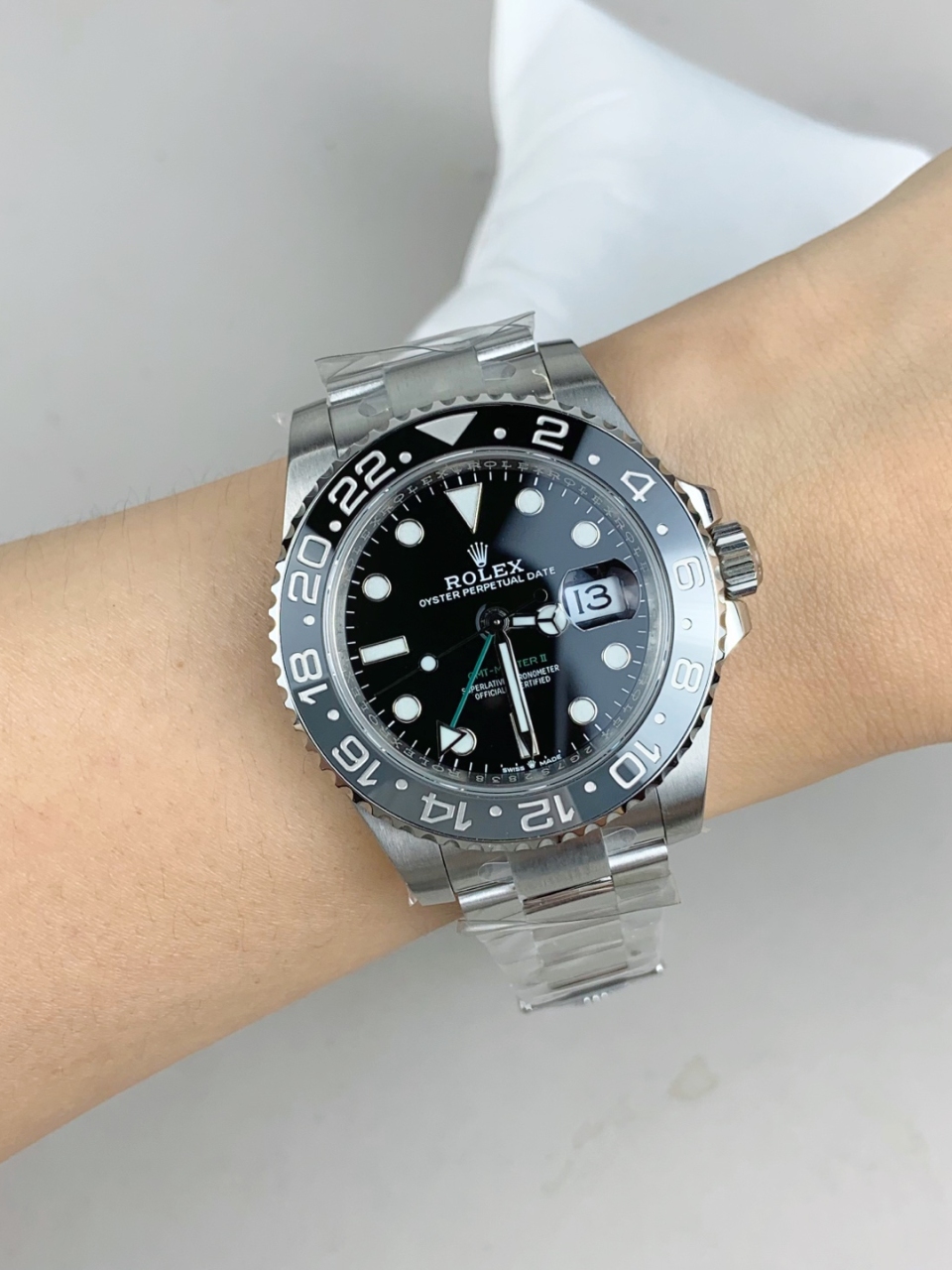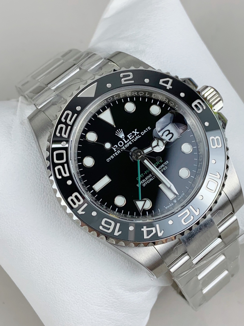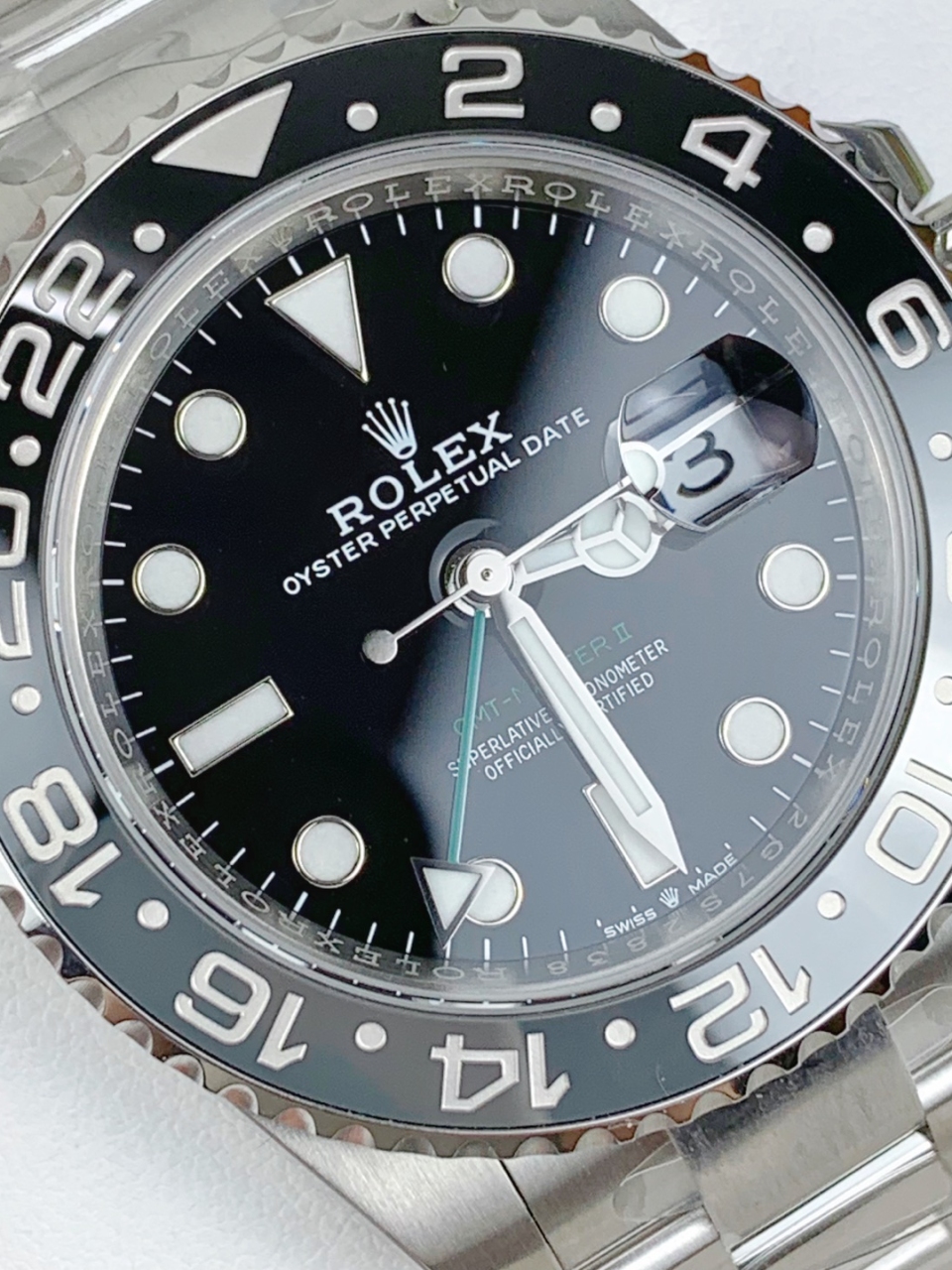 | Movement | Asian JingHe Super Clone 3285 Automatic GMT movement with decorated bridges & rotor with correct hand stack, Free Sprung same as geunine. |