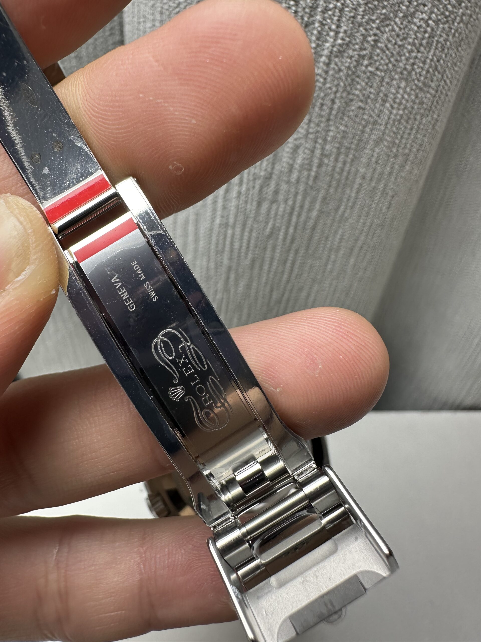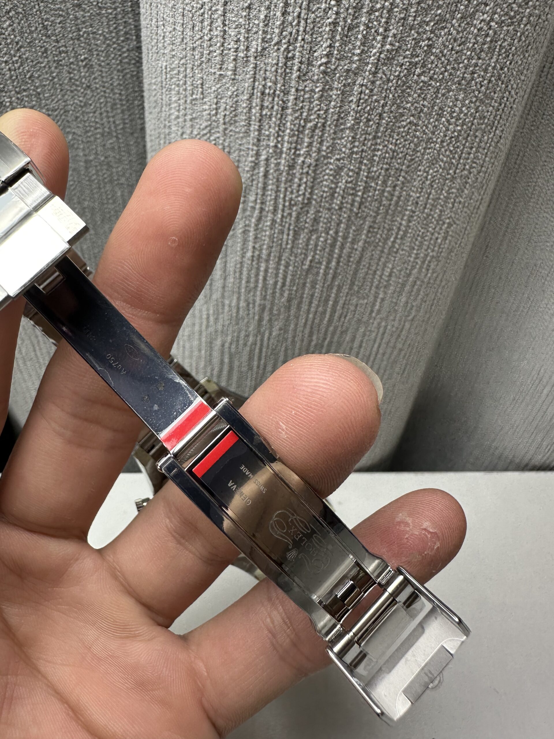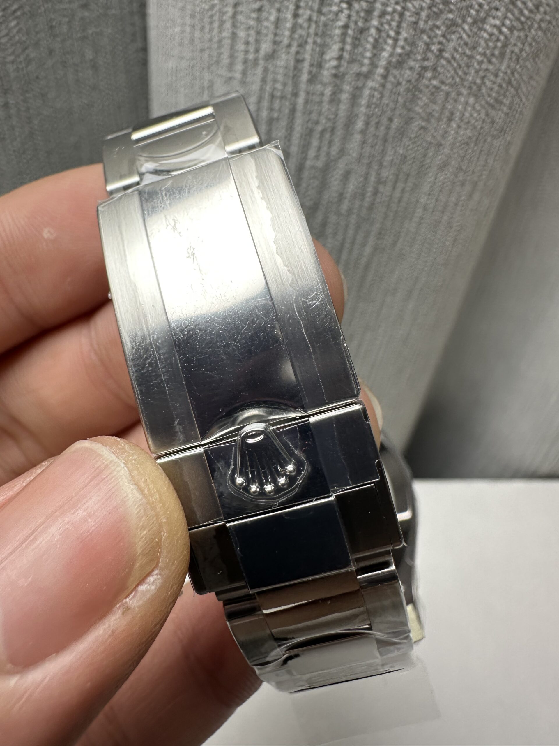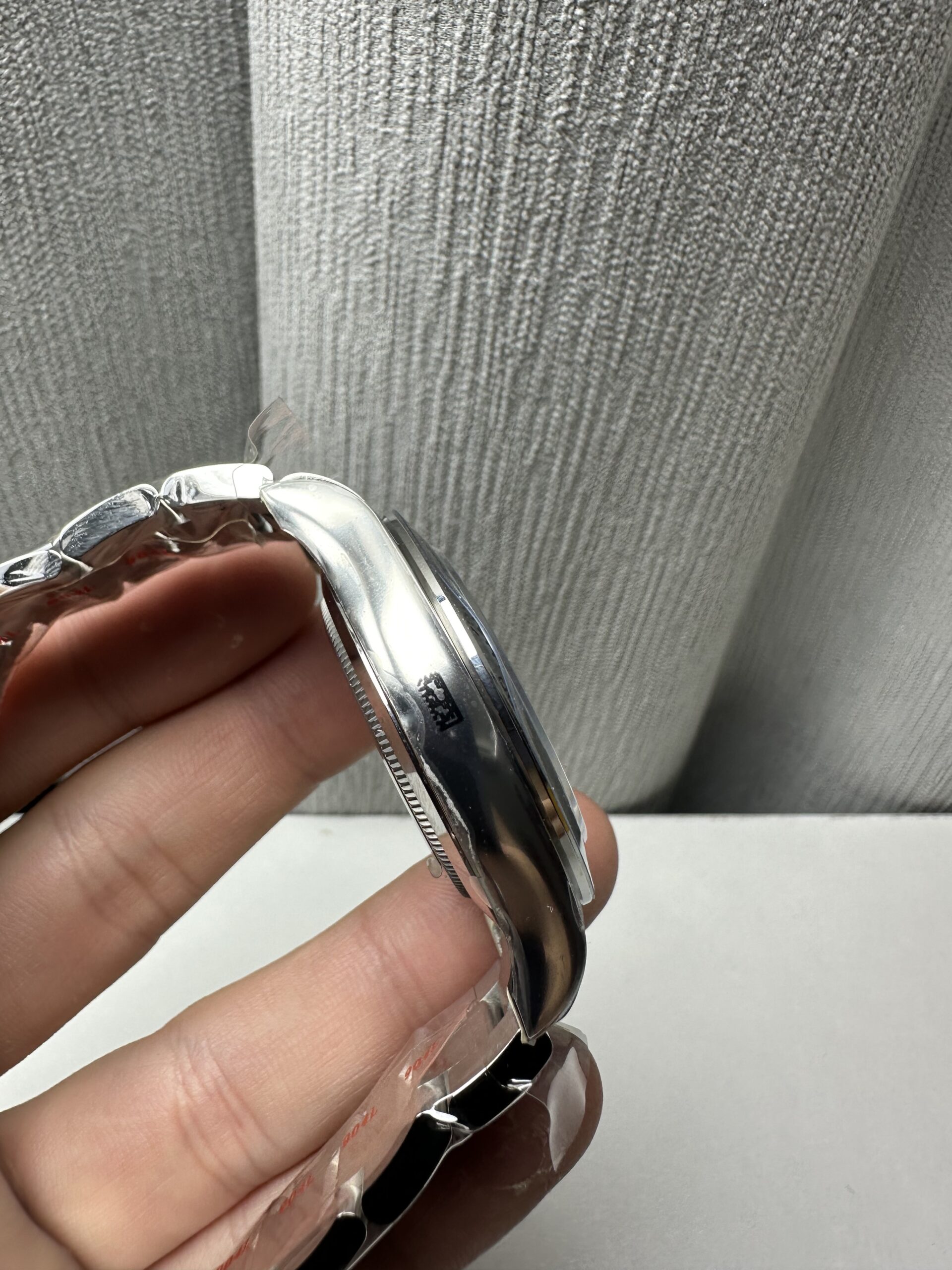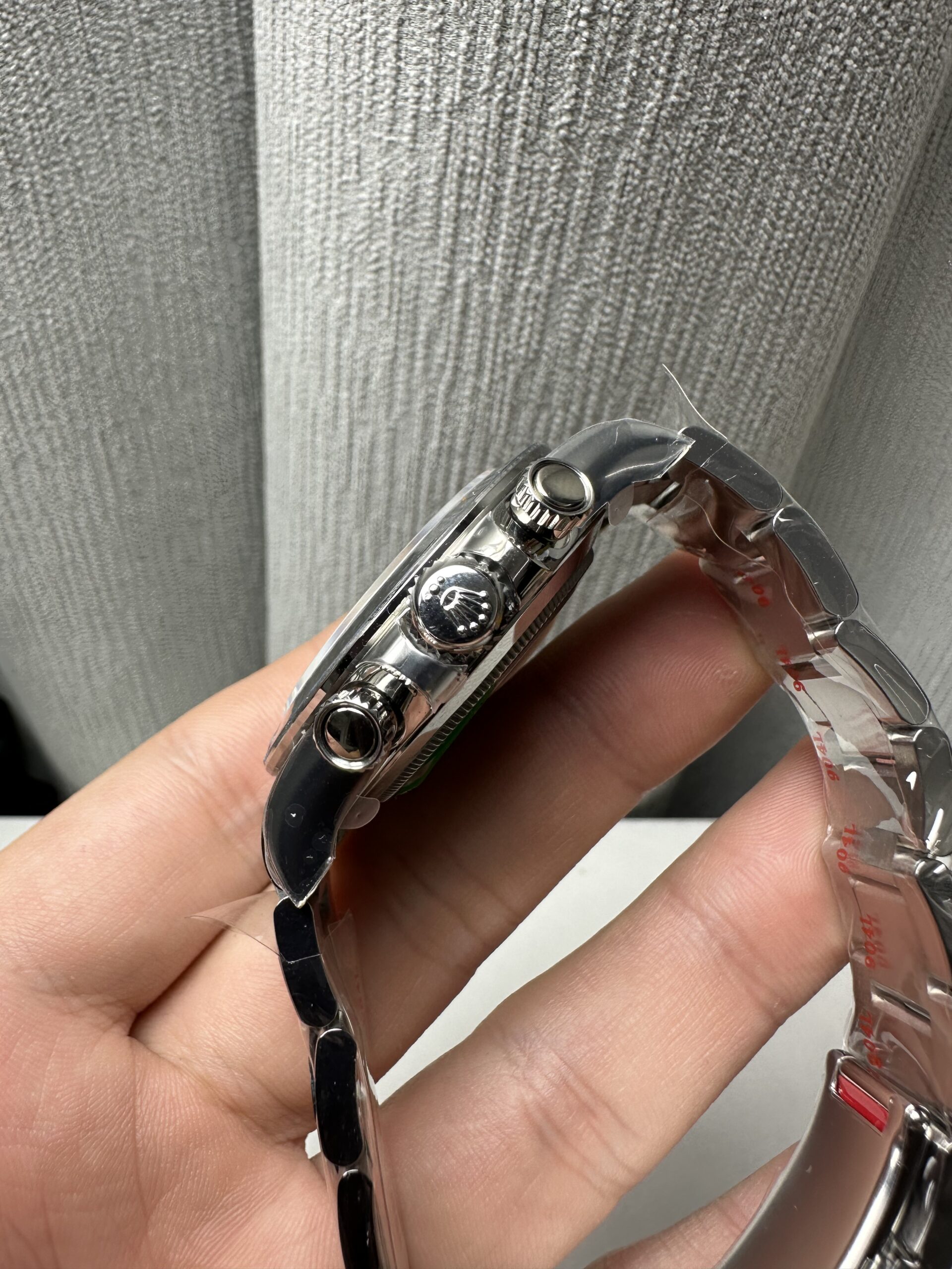 Crystal Scratch-proof sapphire crystal with semi-invisible crown etched at 6:00 position of the crystal (same as genuine and this is the first of its kind, one revolutionary breakthrough of the Rolex replicas)