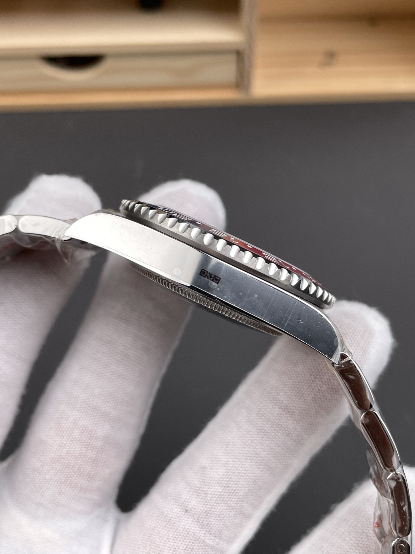 Crystal Scratch-proof sapphire crystal with semi-invisible crown etched at 6:00 position of the crystal